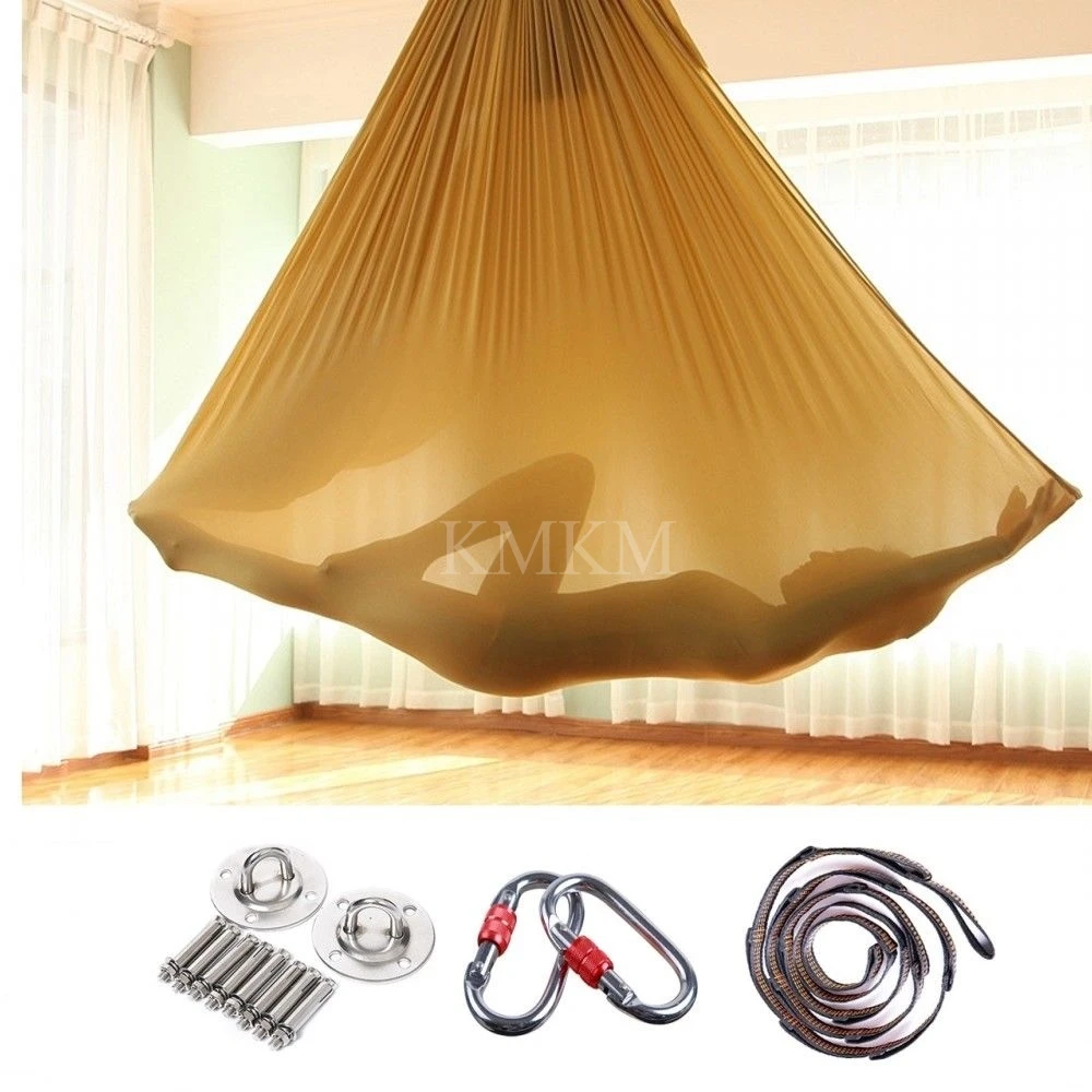 معلومات اضافية اليوغا سوينغ الجوي أرجوحة أرجوحة انعكاس مكافحة الجاذبية كبيرة قوي 5x2.8 متر اليوغا الجسم بناء تجريب اللياقة البدنية المعدات