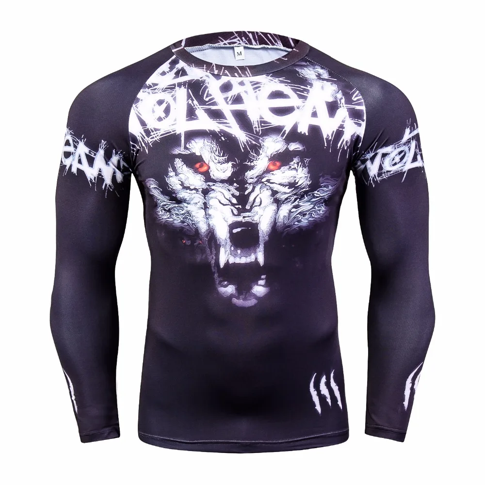 وانت enالبحث عن معلومات Body Building, رجل الجلد الجوارب ضغط قمصان طويلة الأكمام تي شيرت الجسم بناء أعلى الكامل يطبع جيرسي MMA Rashguard اللياقة البدنية الملابس أرغب في شراء